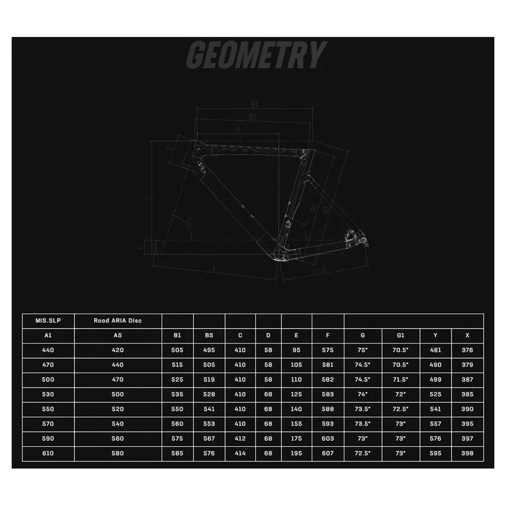 Frame: Aria Disc Carbon, Mechanical/Electronic Shifting Compatible, Pressfit 86,5X41Mm Bb, Head Tube 1.4-1.1/8, Integrated Seat Clamp, Full Carbon Dropout, Flat Mount, Thru Axle 12X142Mm, Sizes 44-47-50-53-55-57-59-61Cm